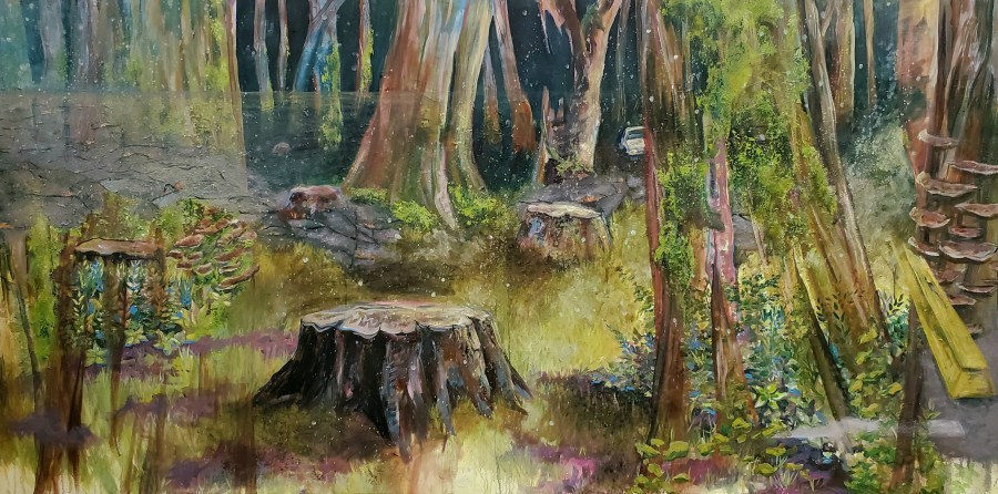 The men with chainsaws came, met a ring of steel-eyed children, spanning the centuries-thick trunk. I wore my favourite coat for the occasion, a hand-me-down ski jacket— across my chest, a burnished sunrise patched above a flat-earth horizon. Hope was a four-foot thing in nylon.
